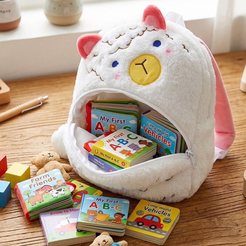 The bag features an endearing sheep/alpaca design, with snow-white fur, pink 3D ears, and a bright yellow nose—a bright and playful color scheme. One look and your child will fall in love. Wearing it, your child will be the brightest star at kindergarten and playground.