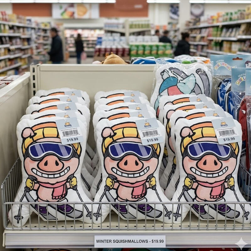 Full of Playful Charm: The piglet—fully geared up for skiing and accented with bright colors (yellow goggles, pink scarf)—creates an energetic and lively athletic vibe. This aesthetic aligns perfectly with the currently trending "healing" or "comfort-core" style.