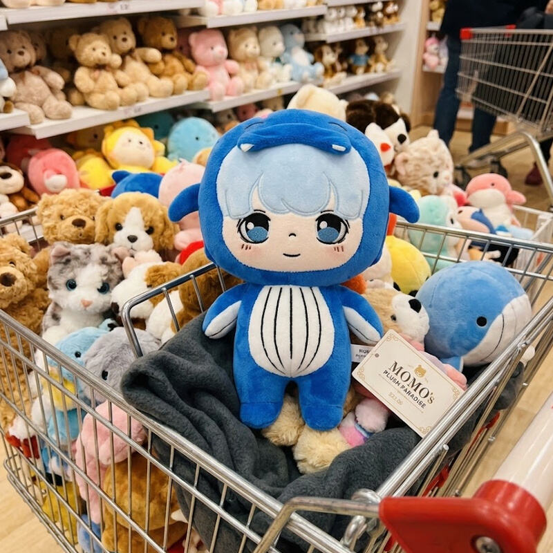 The product combines a human character (a light blue short-haired boy) with an animal shell (a blue whale/marine creature). This "dress-up" design is very popular in the cotton doll community; it retains the character's uniqueness while adding fun, facilitating the subsequent release of different "doll clothes" and accessories, thus establishing a long-tail consumer chain.